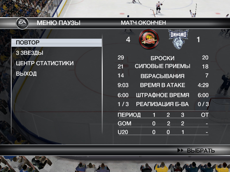 | Period,Time,Goal/Penalty,Team,Player Name,Note 1,09:59,PEN,U20,Markevich Kirill,Obstruction-Hooking (Minor) 1,17:15,PEN,GOM,Kovyrshin Yevgeni,Hooking (Minor) 2,03:05,PEN,U20,Drozd Sergei,Obstruction-Hooking (Minor) 2,04:37,PEN,GOM,Zhidkich Alexandr,Hooking (Minor) 2,12:26,GOAL (0:1),GOM,Kovyrshin Yevgeni,"Solomonov Yevgeny, Glebov Andrey" 2,13:05,GOAL (0:2),GOM,Zhidkich Alexandr,Kolosov Andrei 2,18:03,PEN,U20,Ibragimov Rinat,Hooking (Minor) 3,00:55,PPG (0:3),GOM,Brahmanis Edijs,"Kovyrshin Yevgeni, Kiselevich Bogdan" 3,01:51,GOAL (1:3),U20,Karaban Danila,Unassisted 3,03:29,PEN,GOM,Brahmanis Edijs,Hooking (Minor) 3,08:59,GOAL (1:4),GOM,Brahmanis Edijs,Yeronov Alexander Это первый матч